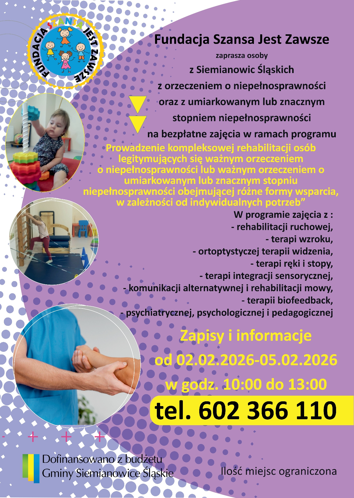 „Szansa na lepsze jutro – kompleksowa rehabilitacja dzieci i osób dorosłych niepełnosprawnych z terenu miasta Siemianowice Śląskie”
